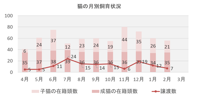 ライフボートの譲渡・飼育データ(月次)