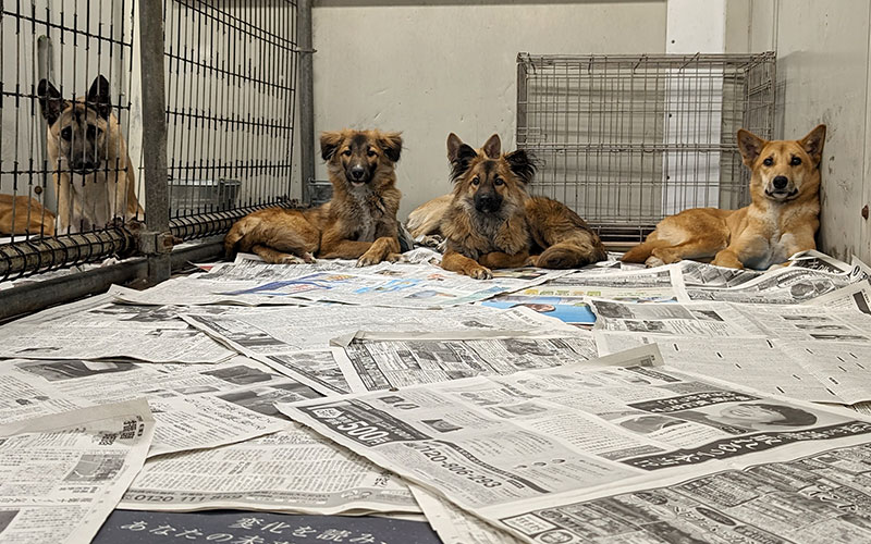- ホチキス止めしたものは使うことができません。スタッフや犬たちがケガをしてしまうためです。