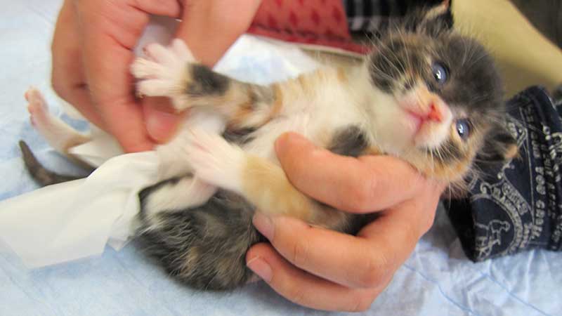 食事がミルクだけの間は、子猫のうんちはやわらかい事が多いです。コロコロしたうんちが出ないからと言ってあまり心配することはありません。ただ、水っぽいうんちをした時には注意が必要です。下痢が続くと脱水を起こすことや、お尻がただれてくることもあります。動物病院で下痢の原因を見てもらい、整腸剤や抗生物質を出してもらいましょう。場合によっては、栄養剤や皮下補液で脱水の治療をする必要があることもあります。