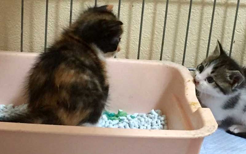 生後21日前後から、人の手で刺激をしなくても排泄するようになります。自力で排泄するようになったらまずは部屋の中にトイレを設置してみましょう。教えなくても覚えてくれる子もいますが、粗相が目立つ時にはトイレ砂の上に立たせて陰部を刺激し排泄を促したり、少量のおしっこをトイレに入れておけば足の裏の感触やにおいでトイレを覚えてくれます。