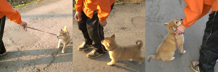 1. まず初めは犬と向かい合った状態で立ちます。そこからおやつなどで誘導しながら自分は後ろ向きに進んで行きます。この時リードは常にたるんだ状態で歩きます。