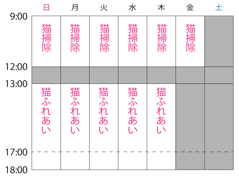 猫のふれあいと掃除ボランティア募集