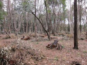 まだまだ「ただの雑木林」です。スタッフや常連のボランティアさんを中心に整理を行いました。