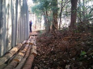 大量に落ちている丸太はライフボートが借り受ける直前に、地主さんが手配して切ってくれたものですが、捨てるのはもったいないので、ドッグランへ入る道をマルタロードにしています。