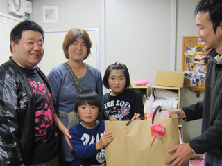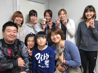 当団体代表からはささやかな猫グッズをプレゼントし、普段動物たちのお世話をしているスタッフとともに記念撮影をさせていただきま