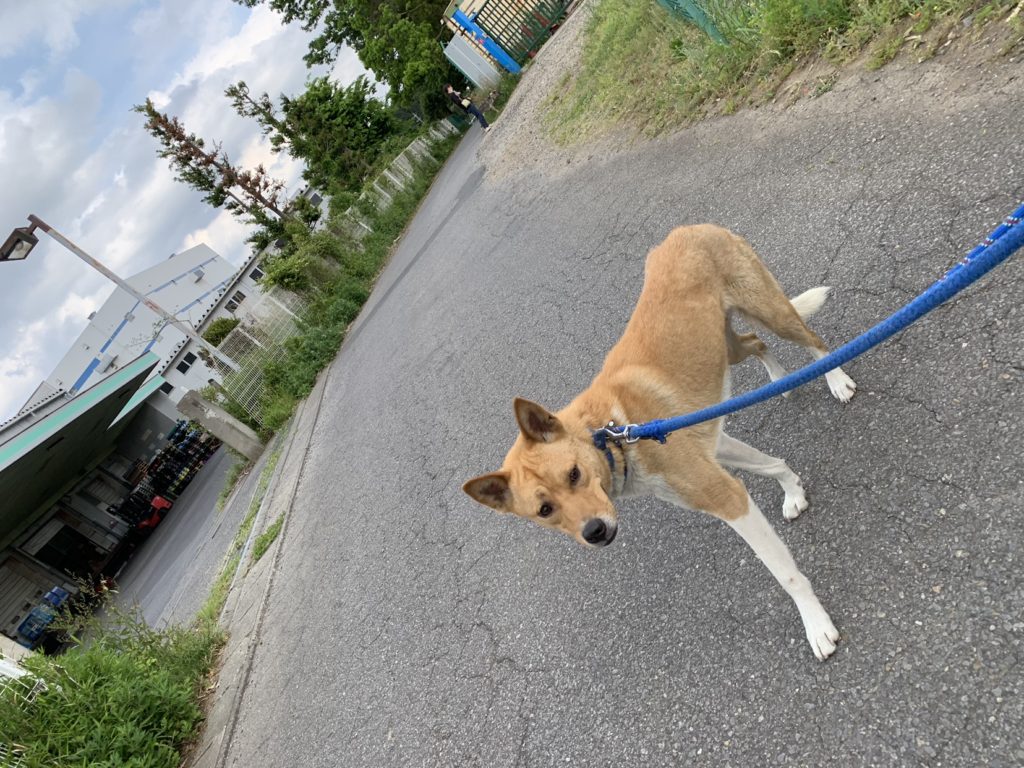 午後はいつもの明智くん。ただ今日の午前から止まる回数が増えて来ました。理由は分かりませんが、止まってしまいます。ですが歩かない訳ではないので気にすることなくこれからも散歩を続けてみようと思います。行き方向の信号のない交差点は歩いていたのに今日は道路の真ん中で座り込んでしまいました。笑 ただ歩いている時はベロだしてしっぽも振りはしませんが隠している訳でもないので怖がっていないかなと思う感じでした。成長はしています。急に歩かなくなってしまうことだけ恐れています。たとえあるかなくなったとしても僕は何度でも特訓させますがね。今日も明智くんは頑張っていました!