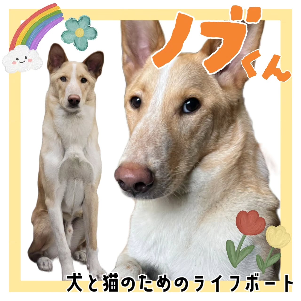 子犬の頃の写真からもわかるように、幼少期はとても怖がりで無表情な子でした。唯一ノブから伝わってくる感情は「ニンゲン、コワイ…」だけ。どうやってコミュニケーションをとっていこうかと当時は悩んだものです。
