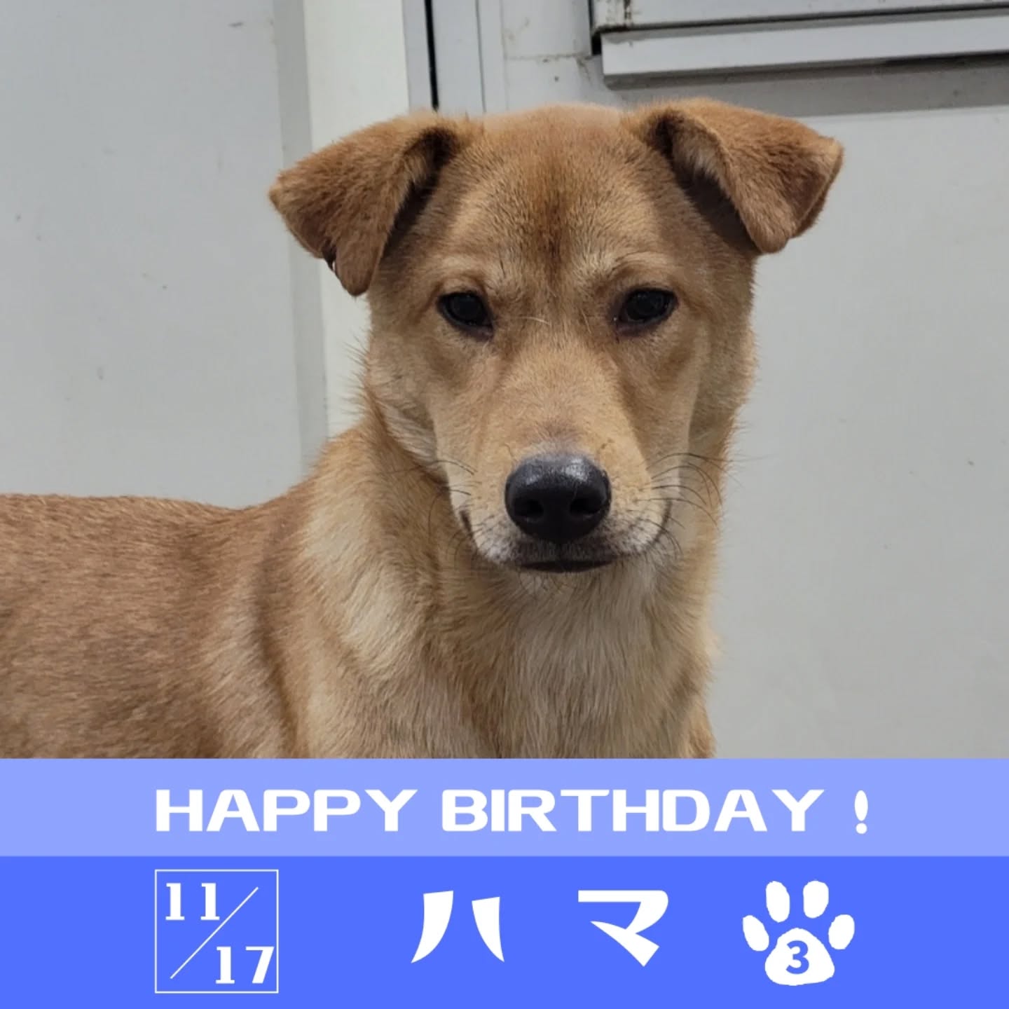 男前だね!と褒めてもらうことの多いハマ、名前の由来はお笑いコンビ「かまいたち」の濱家さんに顔つきが似ているからです。